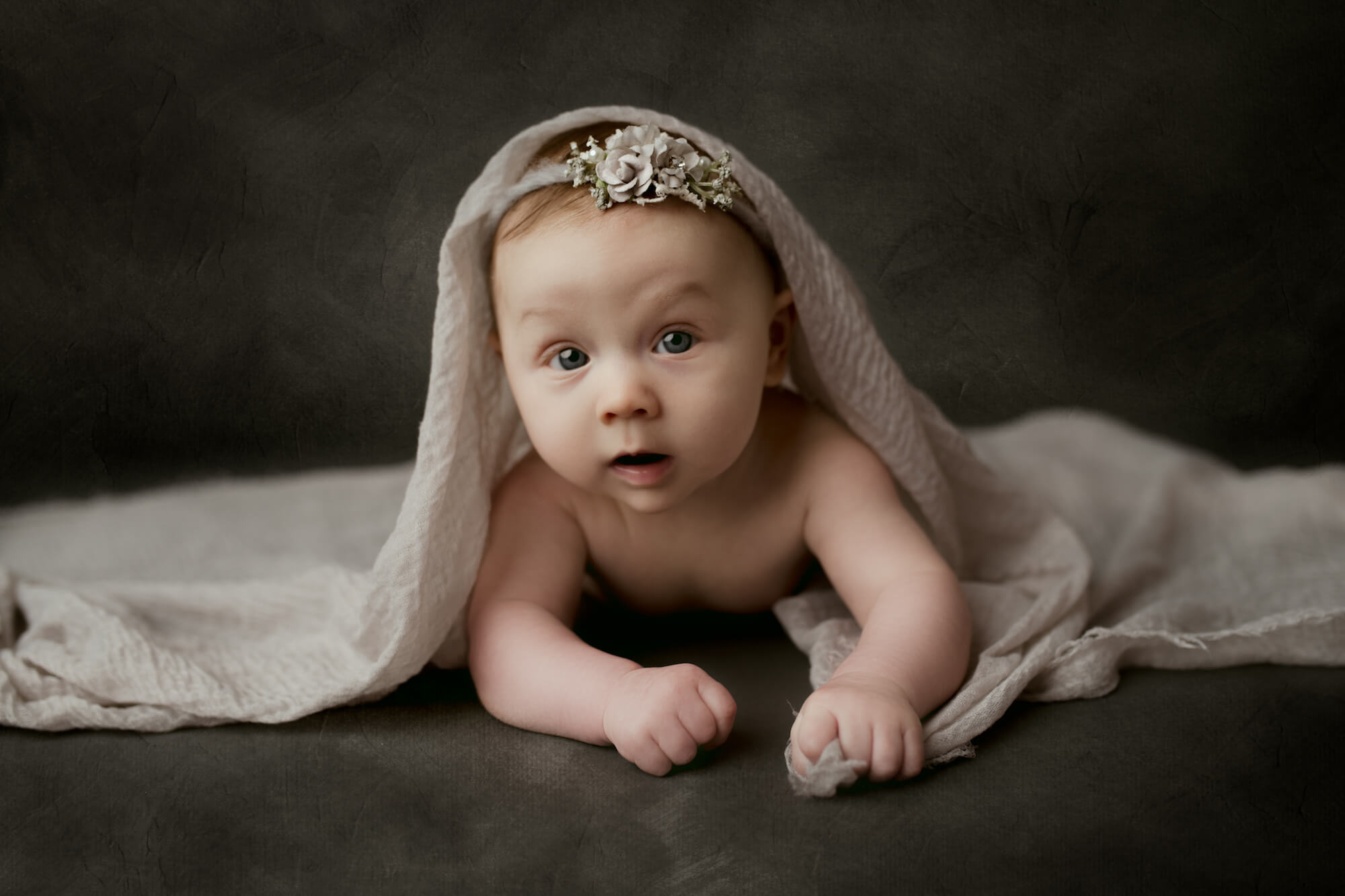3 month sessions are probably the most difficult of all the milestone sessions that I offer. 3 month olds are in between the newborn stage and the laugh on cue stage. They don’t really smile on demand and can fall asleep on you during the session. Little Miss Arlie (I just love her name!) visited me in the studio. We played for a little bit and then we needed a nap.