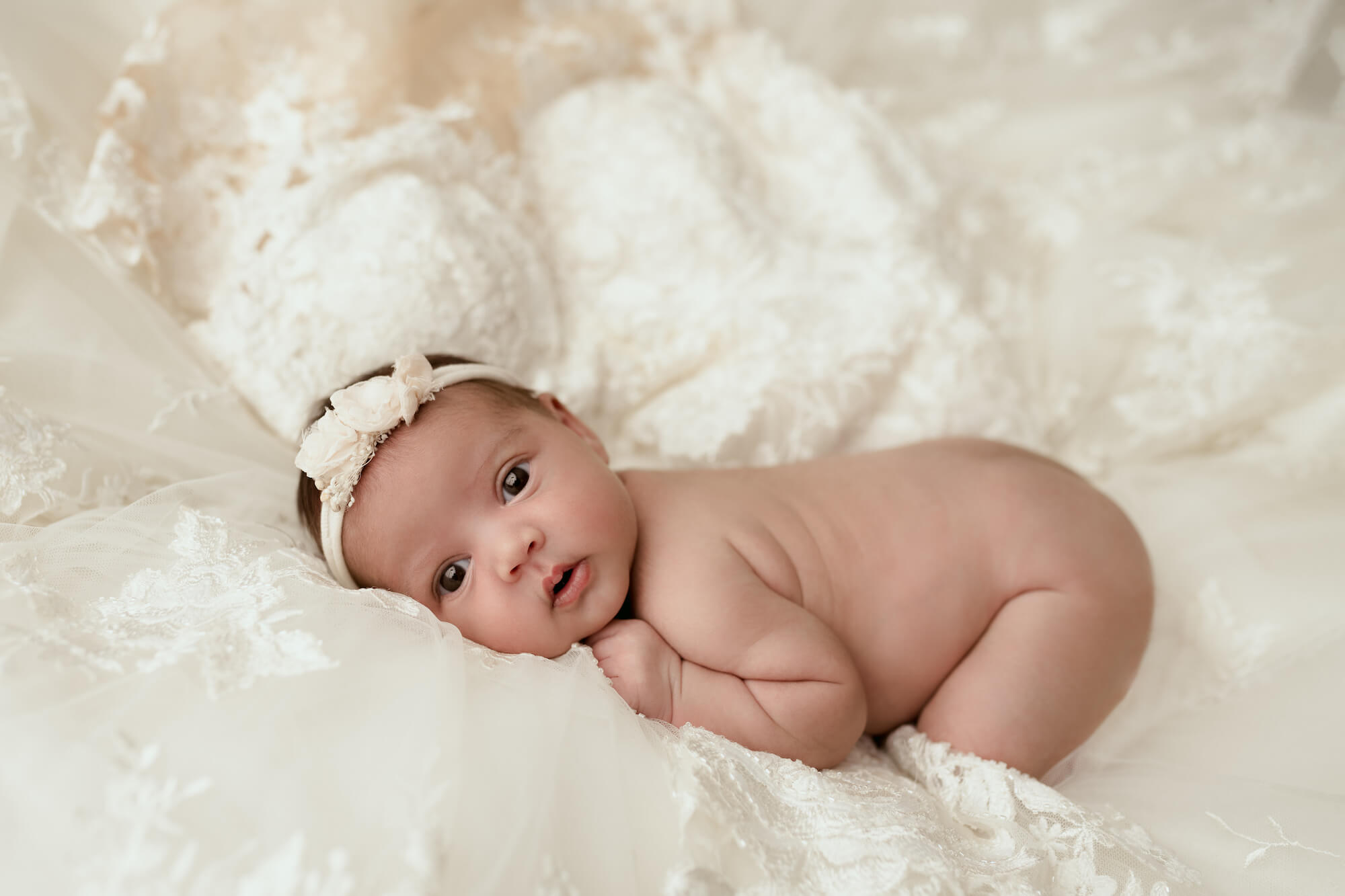 I loved photographing this little baby girl. Mom sent me inspiration images prior to the Woodstock, GA newborn portrait session. I love it when clients do this because it really drives the artistic direction of the photoshoot. She wanted to use her wedding dress in some of the images. Clearly, mom had an amazing eye that led to a wonderful outcome to the session. I couldn’t be more in love with these photos. Such a gorgeous family!
