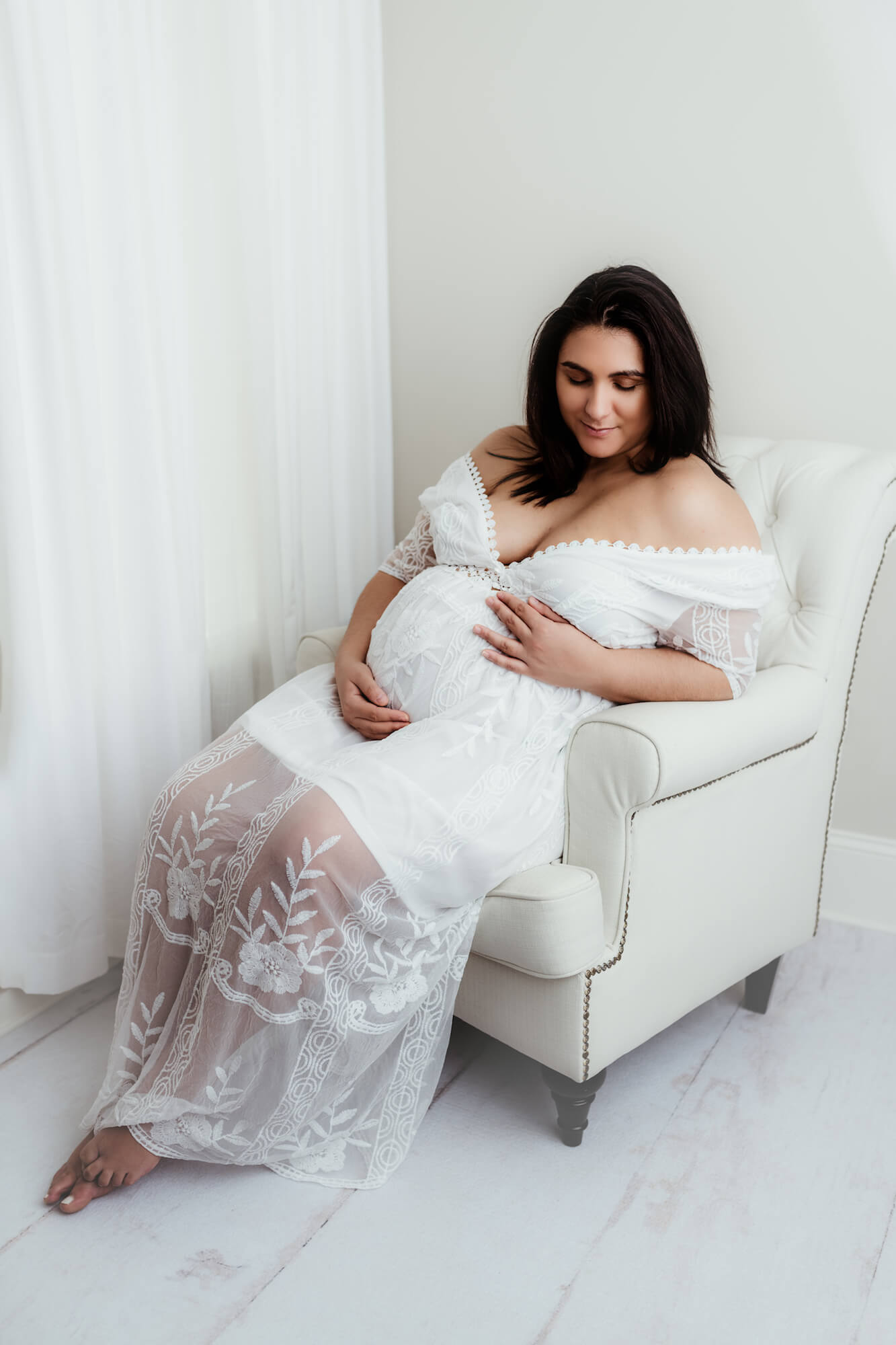 I do not do too many studio maternity sessions. I love the look of the outdoors, the natural landscapes. This mama to be contacted me with her own ideas. I have said this before and I will say it again…I love being pushed outside of my comfort zone. I love how these beautiful images of this glowing mama to be turned out! Please CONTACT ME today for your in studio maternity photos!